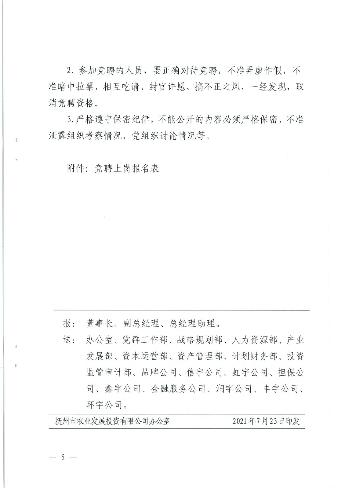 關于印發(fā)《撫州市農(nóng)業(yè)發(fā)展投資有限公司總部兩個部門正職競聘上崗實施方案(試行)》的通知